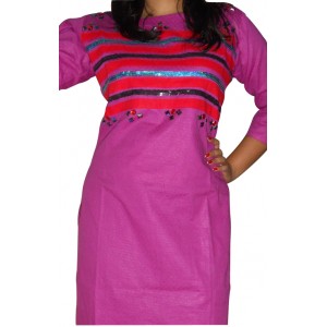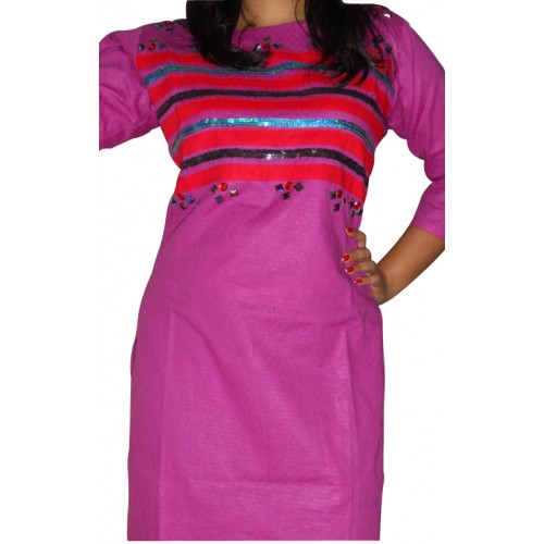 Send gift to Bangladesh. Arong cotton one pcs kamiz with fabric work, comkey and stone works .