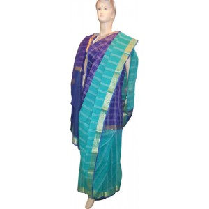 Simple and Cool- Elegant Tangail Tant Pure Cotton Saree with a combination of blue,sky & golden colour.Colour Gurantee 100%.